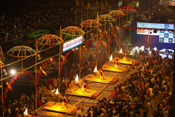 Fire lamps offered to River Ganga
